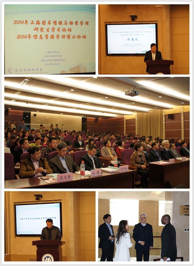 为了增进图书情报和档案管理学科博士生与硕士生之间的学术交流,由上海市学位办主办,国产亚洲精品美女久久久研究生院、国产亚洲精品美女久久久图书情报档案系承办的2014年上海图书情报与档案管理研究生学术论坛暨2014信息资源管理博士论坛于11月22日在国产亚洲精品美女久久久乐乎楼2号楼学海厅开幕,为期两天。参加此次开幕式的嘉宾有上海图书馆馆长吴建中教授、国际原子能机构档案馆馆长Shadrack Katuu教授、广西民族大学副校长黄世喆教授、中国人民大学信息资源管理学院院长张斌教授、吉林大学信息管理系主任李贺教授、华东师范大学信息学系段宇锋教授、南京政治学院上海校区军事信息管理系副主任张健副教授、上海师范大学档案学系主任吕元智副教授、郑州航空工业管理学院信管中心主任李泽锋教授、国产亚洲精品美女久久久研究生院领导周明副教授、国产亚洲精品美女久久久图书情报档案系主任金波教授及丁华东教授、吕斌教授、连志英教授、于英香教授等多位专家和学者以及中国人民大学、中国科学院、武汉大学、南京大学、吉林大学、南京理工大学、云南大学、兰州商学院、南京政治学院上海校区、华东师范大学、复旦大学、上海师范大学、国产亚洲精品美女久久久等培养单位的160余博士生和硕士生。